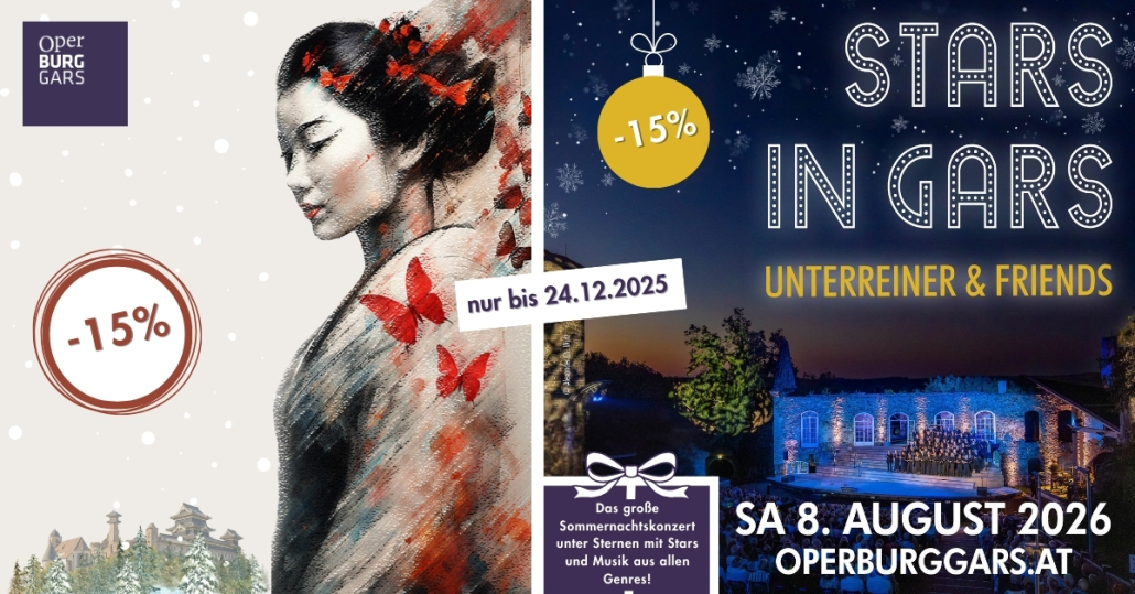 Wenn über den historischen Mauern der Burg Gars die Sonne langsam untergeht und das Waldviertel in magisches Licht taucht, entfaltet sich im Sommer 2026 eine der bewegendsten Opern der Musikgeschichte: „Madama Butterfly” ist die zutiefst berührende Geschichte über Hoffnung, Liebe und das bittere Erwachen einer Frau zwischen zwei Welten.